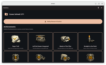 AI Noir tracks your detective career. Cases solved are tallied over time, and achievements unlock as you demonstrate skill: solving the pre-game puzzle, finding every piece of evidence, closing a case fast. Stack enough of them up and something new becomes available.